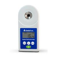 The DeltaTrak Brix Meter is a precise instrument that measures sugar content by using a sample of liquid from soft drinks, processed foods, concentrates or juice from fruit and vegetables. The instrument represents readings relative to the Brix scale, which is the primary unit of measure corresponding to the percent of dissolved sugar in an aqueous solution. This brix meter device can be used to verify ripeness of fruit and the sugar concentration of many foods and beverages.